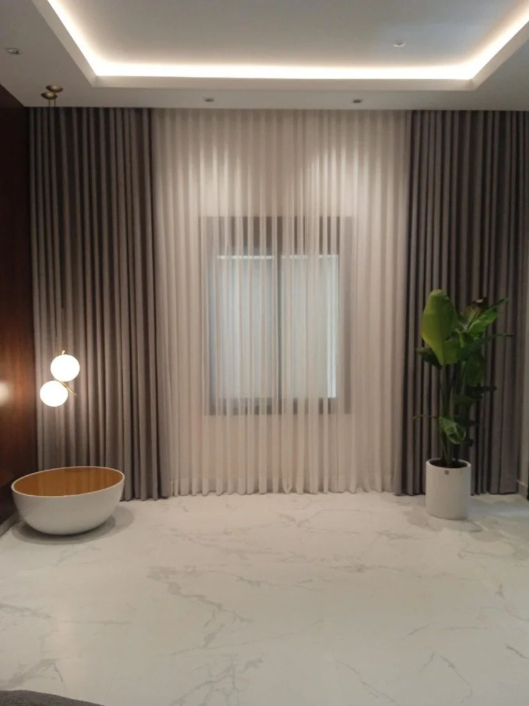 - يتميز بطيّات ناعمة تشكل أمواجا منتظمة او تفصيل ويفي او ما يعرف بالطيات الفندقية (سفطات فندقية) مما يضفي على الستائر مظهرا أنيقا وراقيا. يعد هذا التفصيل مناسبًا للنوافذ الكبيرة والمساحات التي تتطلب إضافة لمسة فاخرة. يساعد في توزيع الضوء بشكل مثالي
